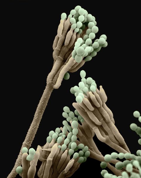 | The mold Penicillium roqueforti gives the French blue cheese its tang. |
